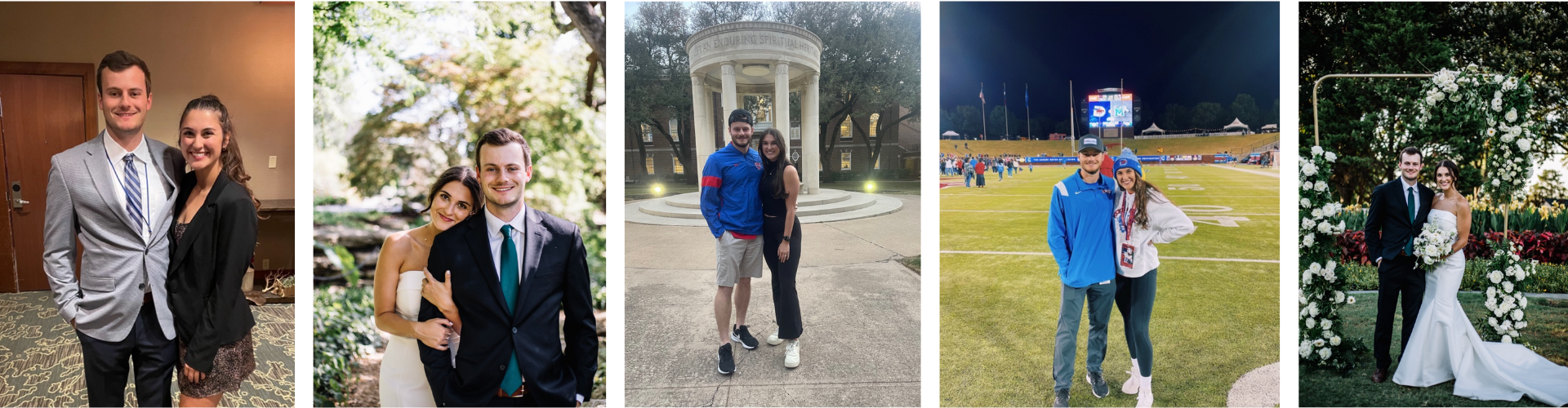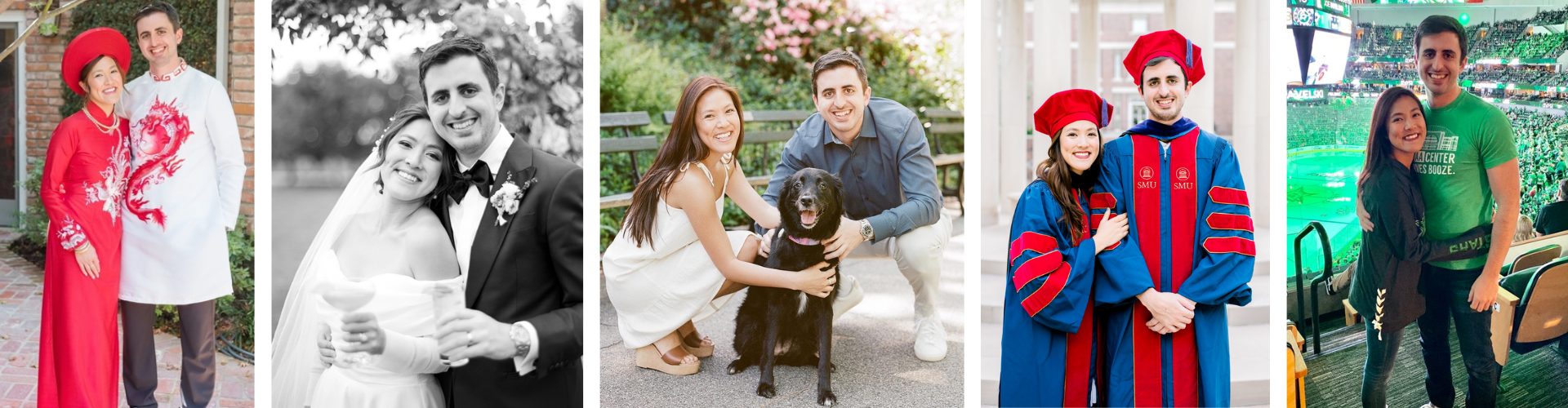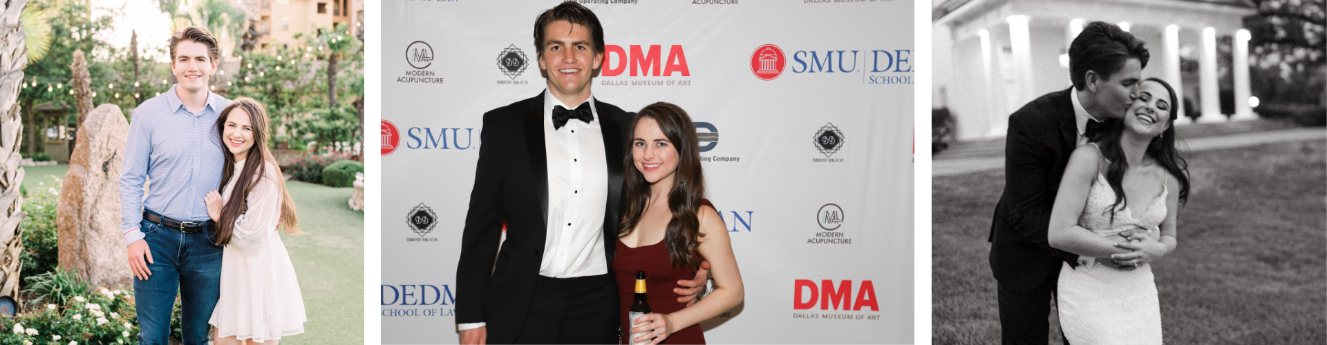 Michael and Jacqueline have geography to thank for bringing them together. In the spring of 2019, Jacqueline was the incoming SBA President. Michael was the incoming Board of Advocates Chair and, as luck would have it, they shared a hallway between their two offices. Michael approached Jacqueline, introduced himself, and they became fast friends. Michael can’t take all the credit for their relationship, though. When asked who made the first move, Jacqueline laughs, “I guess I did! I told Michael that I was starting to like him, but he made the first move for a kiss!” Date nights at The Rustic, cheese fries at Snuffer’s, and arcade games at Cidercade soon followed. They made the most of their time in Dallas, hanging out with friends at Barley House or Milo’s, planning fun movie nights, and they were always on the search for the next dog-friendly restaurant or bar.