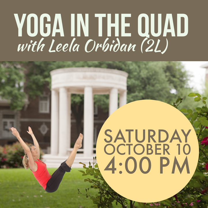 - Yoga in the Quad – Grab your yoga mat and head to the law quad for a late-afternoon yoga session led by Leela Orbidan (2L).