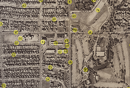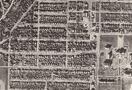 These photographs are part of the Foscue Map Collection. SMU Libraries worked with regional historian George Cearley to identify essential features in the photos such as major roads, railways, and landmarks. In the digital collection, there are two versions of each image, labeled and unlabeled. Labeled images include George Cearley's annotations, which appear below the image. Each image contains a link to the corresponding labeled or unlabeled photograph.