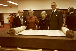 Rabbi Olan is remembered as one of Dallas’s great preachers. During his entire tenure at Temple Emanu-El, Dallas, his work included preaching over the radio on the Temple Emanu-El Program. Bridwell Library holds 126 reel-to-reel tapes containing recordings of 211 Temple Emanu-El Program broadcasts recorded between 1961 and 1970. Because the magnetic tapes are becoming unplayable due to age, and in order to allow Rabbi Olan’s teachings to be heard by the public once again, the sermon recordings were digitized. With permission, Bridwell Library also digitized corresponding typescript copies of the sermon texts that were distributed by the Temple Brotherhood at the time of the original broadcasts. Data needed to complete the project but not held by Bridwell Library was provided by the Dorothy M. and Henry S. Jacobus Temple Emanu-El Archives, Dallas, and the Jacob Rader Marcus Center of the American Jewish Archives, Hebrew Union College, Cincinnati.