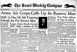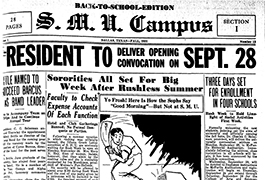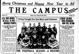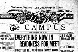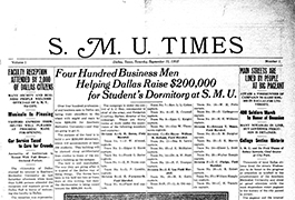 Beginning a tradition that has thrived for more than a century, SMU students published a campus newspaper the first month the university opened. The "S.M.U. Times" premiere issue debuted September 11, 1915 — 11 days before school started. Articles in that first issue included "Four Hundred Business Men Helping Dallas Raise $200,000 for Student’s Dormitory at S. M.U.," "Faculty Reception Attended by 2,000 of Dallas Citizens," "Many Stars to be on Football Squad," and more.