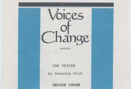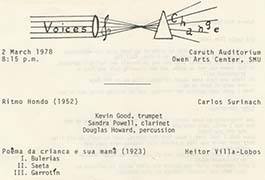 The Voices of Change Recordings and Materials digital collection provides a selection of Voices of Change performances along with corresponding materials (programs, etc.) The online collection features performances of works by Leonard Bernstein, Igor Stravinsky, George Crumb, Heitor Villa-Lobos, and others.