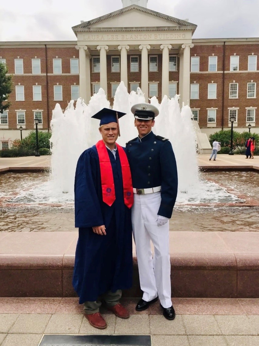 John Reynolds (right) attended the 2015 graduation of older brother Jack from the Cox School of Business while he was a U.S. Air Force Academy cadet.