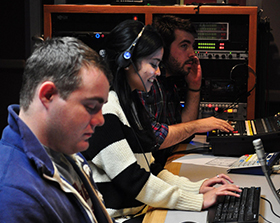 The control room is the nerve center behind the television production studio. Students get hands-on experience using industry-standard HD equipment and programming, all in preparation for real-world, industry work.