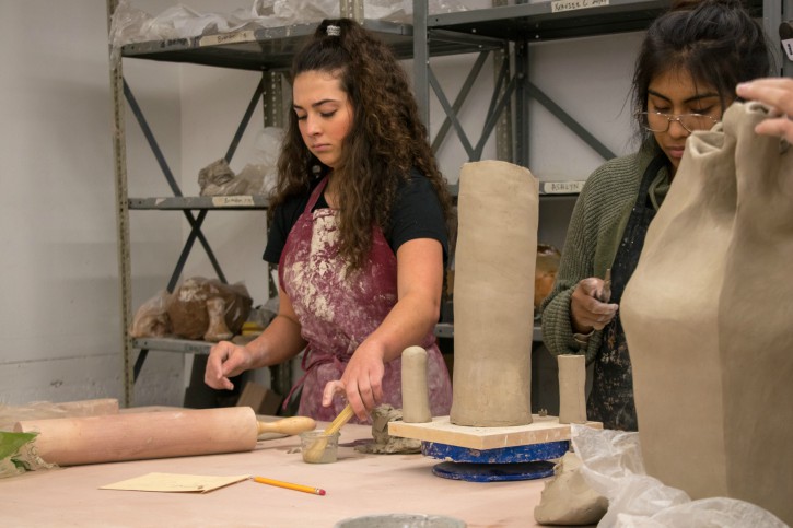 Facilities for the study of art include well-lighted studios, individual workspaces and excellent equipment to support all media in the curriculum, as well as individual experimentation. Facilities span both new and traditional approaches to studio art, including a woodshop, foundry, ceramic studio, painting and drawing studio, darkroom and digital photography processes and printers, video and computer-generated imaging labs, digital fabrication tools, virtual and augmented reality, and physical computing. Art students work as broadly and as experimentally as they wish within an environment of open artistic exchange, surrounded by artists in dance, music, theatre, film and communications.
