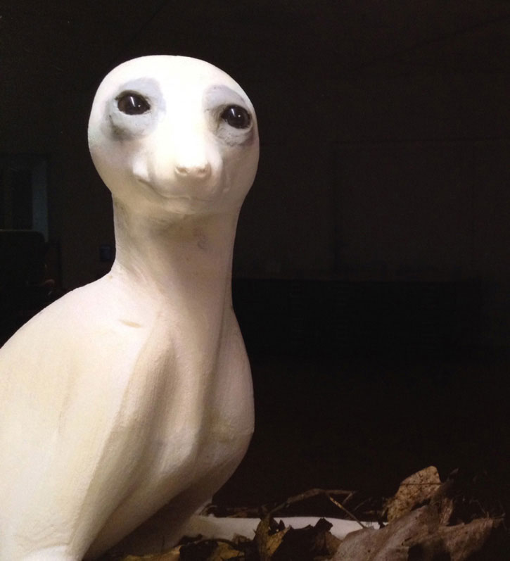 “It evokes sympathy and confrontation from the viewer while at the same time remaining completely empty, since we know it’s an inanimate object,” says Keasler. “There is an element of false recognition between the viewer and object. The piece seems familiar but it isn’t. It’s nothing I know in ordinary life.” Keasler adds that the piece reverses the traditional human/animal power play of taxidermy, causing the viewer to become the object of the gaze at every angle.