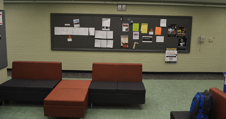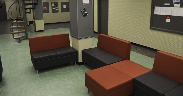 In addition to the floor changes, there are now brightly colored couches and tables located in the green room where students can study or grab a bite to eat in between classes.