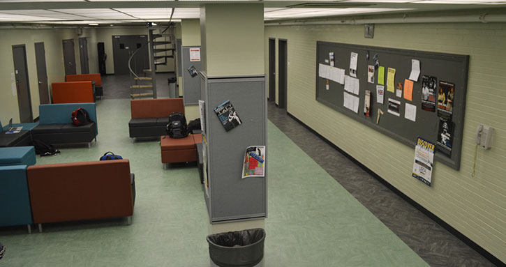 Hengst and his team took out the carpet in the green room and replaced the floors throughout the entire basement. He also decided to replace the carpet in B430 with hardwood floors to keep the room more sanitary.