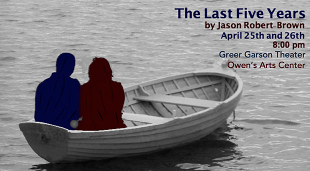 The Last Five Years a contemporary song-cycle musical that ingeniously chronicles the five-year life of a marriage. The show is an intensely personal look at the relationship between a writer, Jamie Wellerstein, and an actress, Cathy Hiatt, told from both points of view - his going forwards and hers going backwards. The show features B.F.A. Theatre students Teddy Warren (’14) and Jana Beeson (’14).