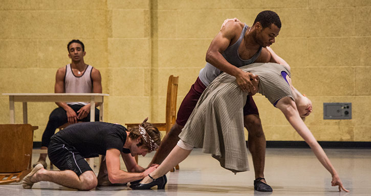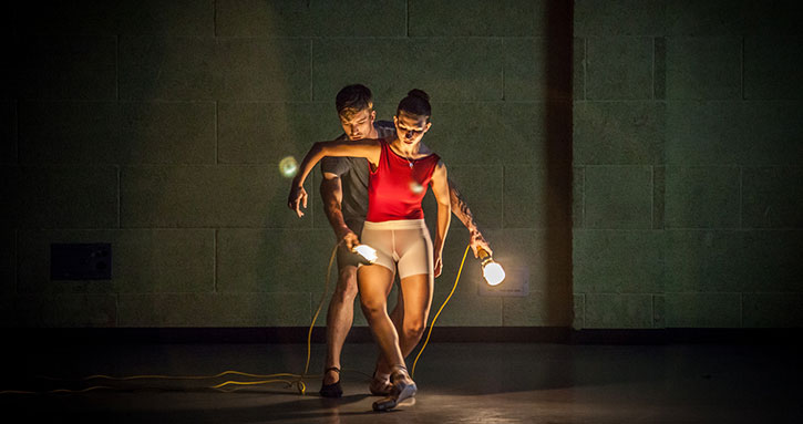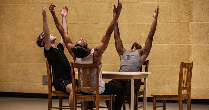 Hermann Rorschach meets M.C. Escher in the program opener Handle, a world premiere by faculty member Christopher Dolder that’s an experimental collaboration of movement and media. Dolder explores how people perceive identity, dimension and matter by manipulating the physical properties that audiences often simply assume are present. Through the use of video projection, motion sensing, permeable walls, and costumes with actual handles sewn in, Dolder establishes an environment where subjects are objects, vertical becomes horizontal, and physical presence may very well be an illusion. A former Martha Graham Dance Company soloist, Dolder is an expert in dance kinesiology and is currently researching new forms of physical data capture in collaboration with the Meadows School’s Center of Creative Computation.