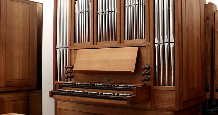 The two-manual organ with six stops was created in 1974 for Rübsam and resided at his home in Indiana. Rübsam, whose teachers included the late Dr. Robert T. Anderson at SMU, recently moved and decided to donate the organ to SMU in Anderson’s memory. The organ was delivered and installed in a practice room in the Meadows School in August 2014. The dismantling, cleaning, moving, and installing of the instrument was done by the Buzard Organ Company from Champaign, Ill., under the direction of SMU piano technician David Brown.