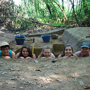 Kandi Doming, far right, with fellow student archaeologists at Poggio Colla in Italy, 2013.