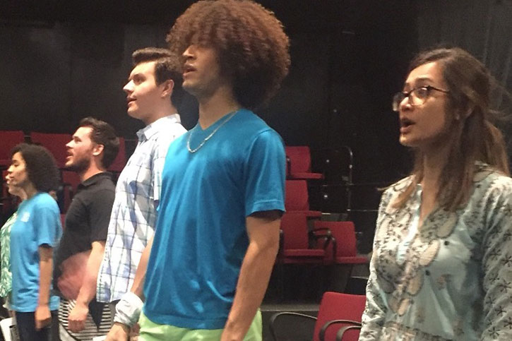 Assisting Dupuy in production is Lane Harder, lecturer of music composition and theory and director of SYZYGY, the contemporary music ensemble at Meadows. (Coincidentally, in an early scene in the musical, a character reminisces about when she once won a spelling bee by spelling the word “syzygy” correctly.) “The class addresses needs that our students have in terms of finding artistic success as well as employment as working musicians upon graduation,” says Harder. “Our students work very hard and bring such a focus to their work. It’s gratifying to see their very rapid progress.”