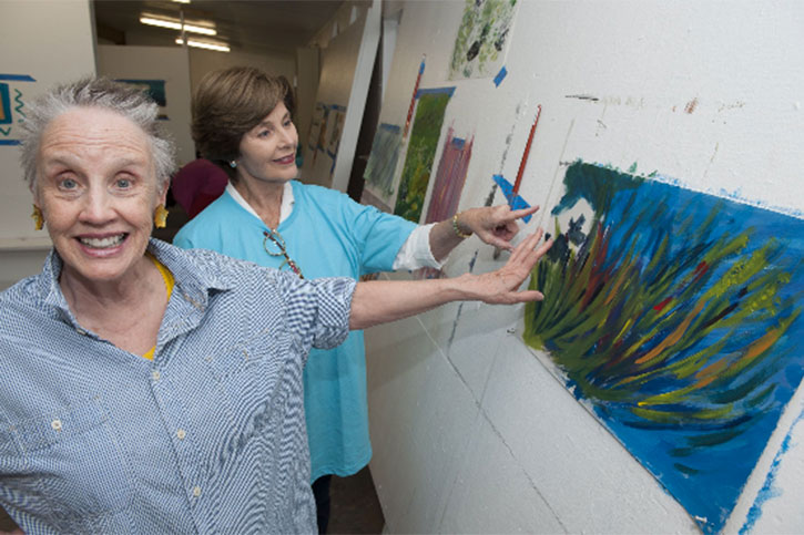 Simultaneously, she built a significant career as an artist. Her art has been shown in numerous exhibitions and in various books, articles and essays, and is widely held in corporate and private collections, including the George W. Bush Presidential Library and Museum, The Belo Foundation and the U.S. Department of State. One of her large paintings, Botany (2014), was recently acquired by the U.S. Embassy in N’Djamena, Chad; other U.S. embassies have shown her work, including those in Bucharest, Romania; Riga, Latvia; and Santiago, Chile. She served as the U.S. State Department Visiting Artist in Chile in 2003 and has shown her work internationally in countries such as France, Hungary and Kazakhstan. She is represented by Valley House Gallery & Sculpture Garden in Dallas.