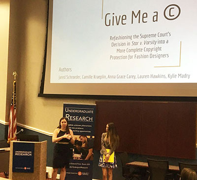 This is the question tackled by two SMU Meadows journalism professors and three students that led to award-winning research over summer 2017. The team’s resulting paper, “Give Me a ©,” refers to a recent Supreme Court decision on Star Athletica vs. Varsity—two cheerleading uniform manufacturers—on whether Varsity’s rights were infringed when Star appeared to copy its designs. The paper was presented at the 2018 AEJMC (Association for Education in Journalism and Mass Communication) Southeast Colloquium, held at the University of Alabama March 10-12. “Give Me a ©” won Top Paper in the Law and Policy category.