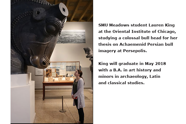“I was initially drawn to the Ph.D. program at Penn by the amazing faculty, resources and funding offered to their students,” says King. “Everyone was very welcoming. The students seemed really happy with how the department is run and I’ve already started sharing research ideas with some of the faculty. The past four years with SMU Meadows’ Art History Department have been wonderful and I can’t thank the faculty enough for the knowledge and support they’ve given me. I’m excited to continue my education at the University of Pennsylvania.”