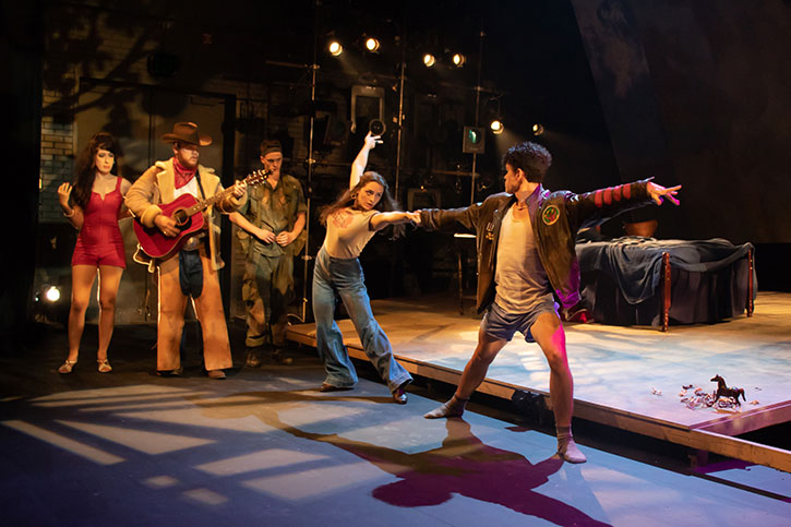 Immediately after the internship, Johnson worked as an assistant costume designer on Dallas Theater Center’s production of A Winter’s Tale. Johnson’s most recent work was designing costumes for an SMU Meadows Division of Theatre production of A Lie of the Mind,a play by Sam Shepard set in the 1980s, performed at Meadows’ Margo Jones Theatre. The director and design team changed the decade to the 1970s and Johnson began sketching. In addition to costume designs, she shopped at various vintage clothing stores and pulled from the Theatre Division’s ample wardrobe stock, repurposing some articles of clothing into new creations stitched by the professional staff in the Meadows costume shop. She also helped with hair and makeup, and provided a color template for creating the look of bruising on one character’s face.
