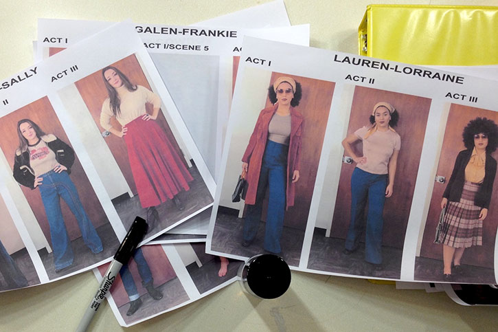 Photos courtesy of Yvonne Johnson. Image of costume sketchings for “A Lie of the Mind” shows Ellie Gilbert (B.F.A. Theatre ’19) as “Sally” and Lauren Steele (B.F.A. Theatre ’19) as “Lorraine.”