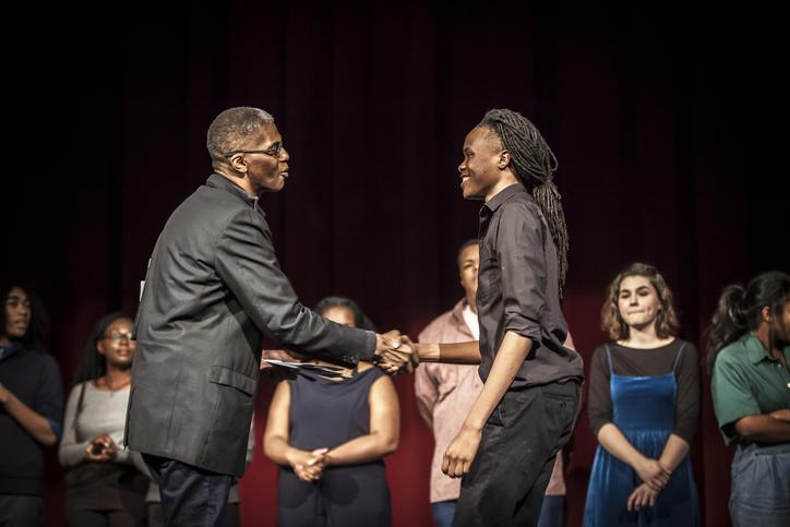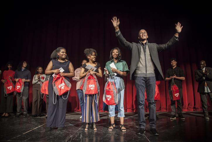 In the days leading up to the competition, several SMU Meadows Theatre majors pitched in by working with the contestants on their deliveries and helping with semifinal and final logistics: Coda Boyce; Diego Martinez Martinez (B.F.A. Theatre ’19); Jasonica Moore; Jeffery Pope (B.F.A. Theatre ’21); Bonnie Scott (B.F.A. Theatre ’19); Stakiah Washington (B.F.A. Theatre ’21); and Roderick Woodruff. Pope, Scott and Washington are all former Dallas Region winners of previous August Wilson Monologue Competitions.