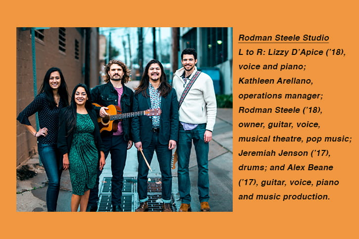 When he graduated in 2018, Steele founded his own company, Rodman Steele Studio. The studio specializes in developing mentorships and creating personalized lesson plans for clients interested in guitar, voice, percussion, jazz, musical theatre and pop music. After just one year in business delivering lessons and workshops in clients’ homes, Rodman Steele Studio is now building its own studio space.