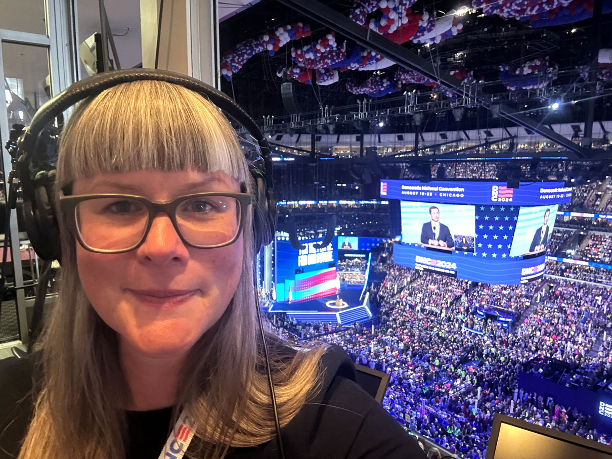 One of Melton's recent gigs was live describing the Democratic National Convention in Chicago this past August (above).