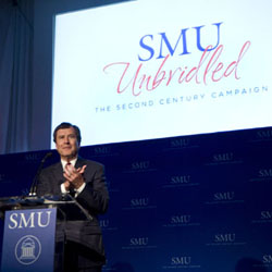 "Recognizing our first 100 years, The Second Century Campaign looks boldly to the future to build a new era of achievement," said SMU President R. Gerald Turner. "This campaign will strengthen our ability to enable the best students to attend SMU and the most distinguished faculty to teach and inspire them through challenging academic programs. With these contributions to the intellectual and economic vitality of Dallas, SMU will increasingly play a leadership role in supporting our region as a national center of commerce and gateway to the global community. The Second Century Campaign represents a great opportunity to shape our future with confidence and optimism."