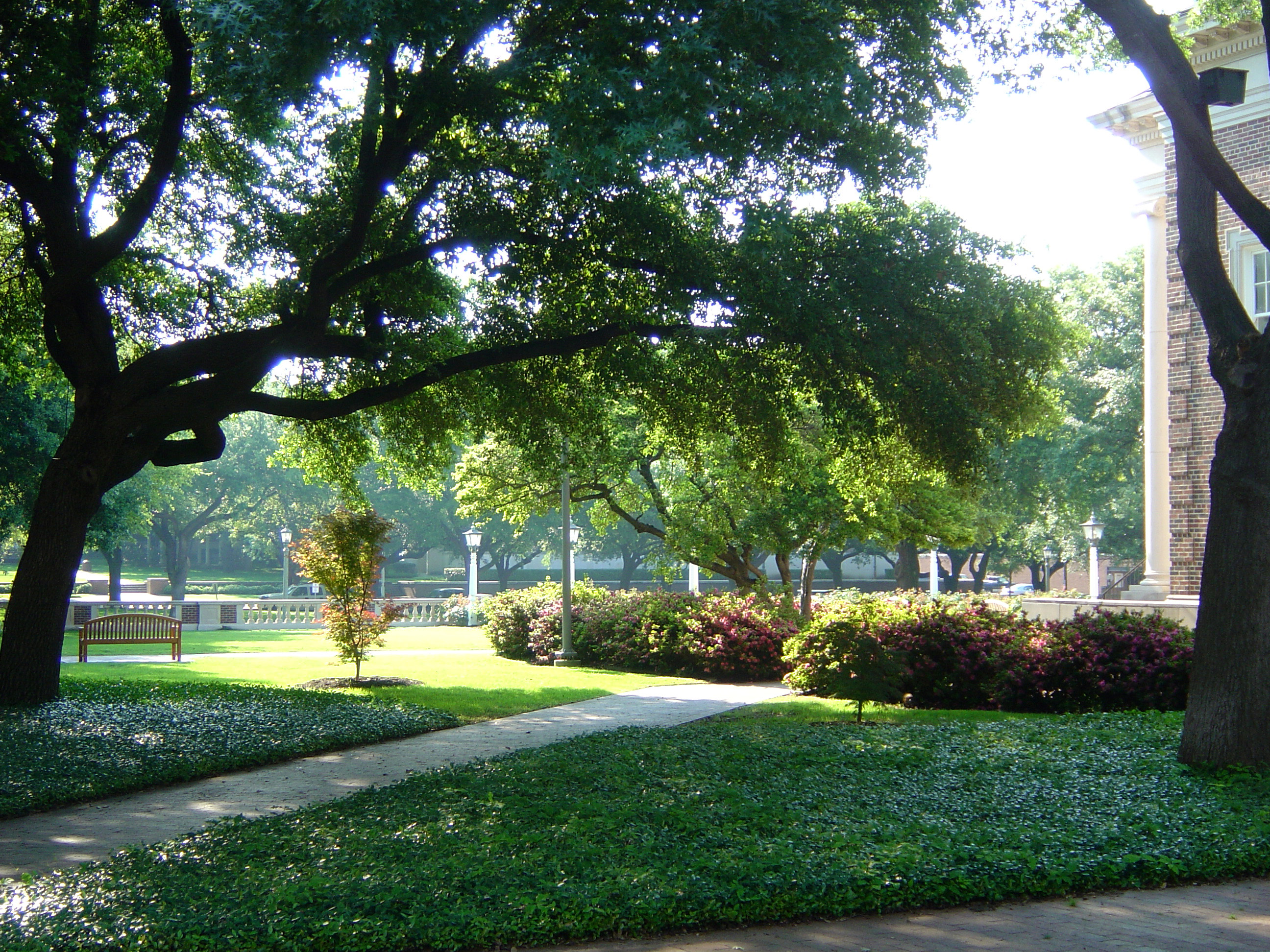 SMU’s tree-lined campus recently was one of two universities nationwide to receive the Professional Grounds Management Society’s highest award, the Grand Award. The 170-acre campus is characterized by stately live oaks and grass quads that stay green year-round.