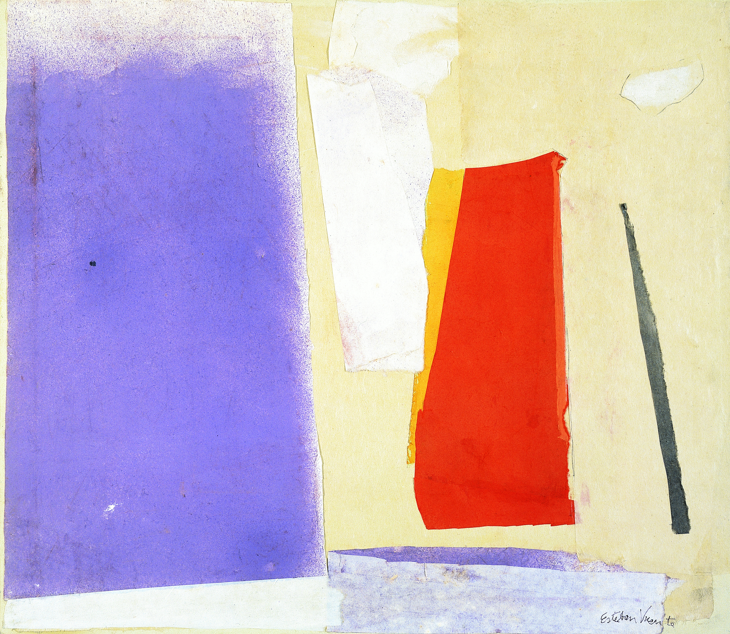 Vicente’s collages, which he first began producing in 1949, provide an insightful connection when viewed alongside works on paper created by some of his contemporaries, including Jackson Pollock and Willem de Kooning.