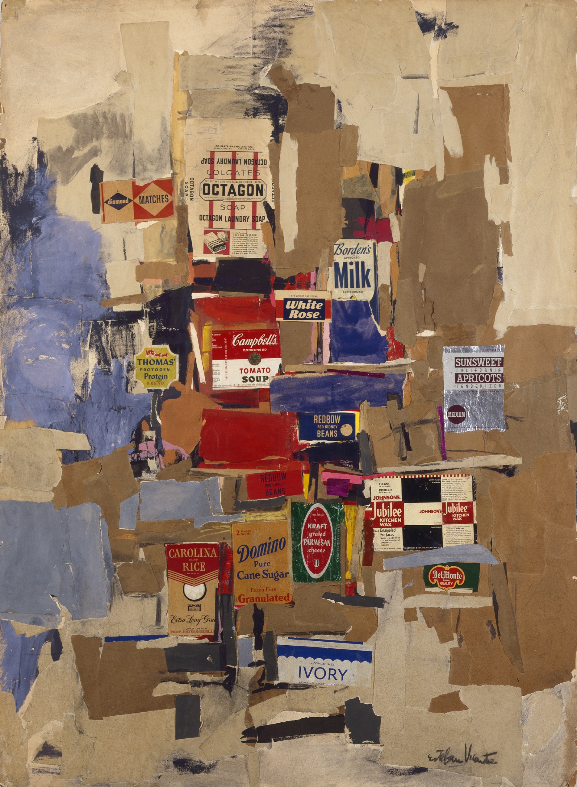 Vicente was one of the founding members of the New York Studio School. He also taught at numerous universities throughout the United States, counting among his students leading artists Chuck Close and Brice Marden. The objects included in the exhibition span fifty years of Vicente’s long career and include such works as Labels (1956), which precedes Warhol’s famous appropriation of the Campbell’s soup logo.
