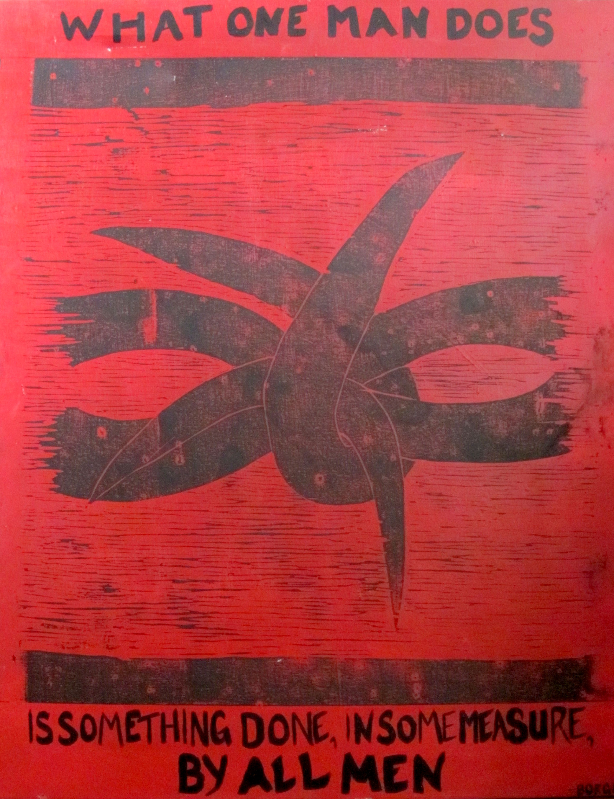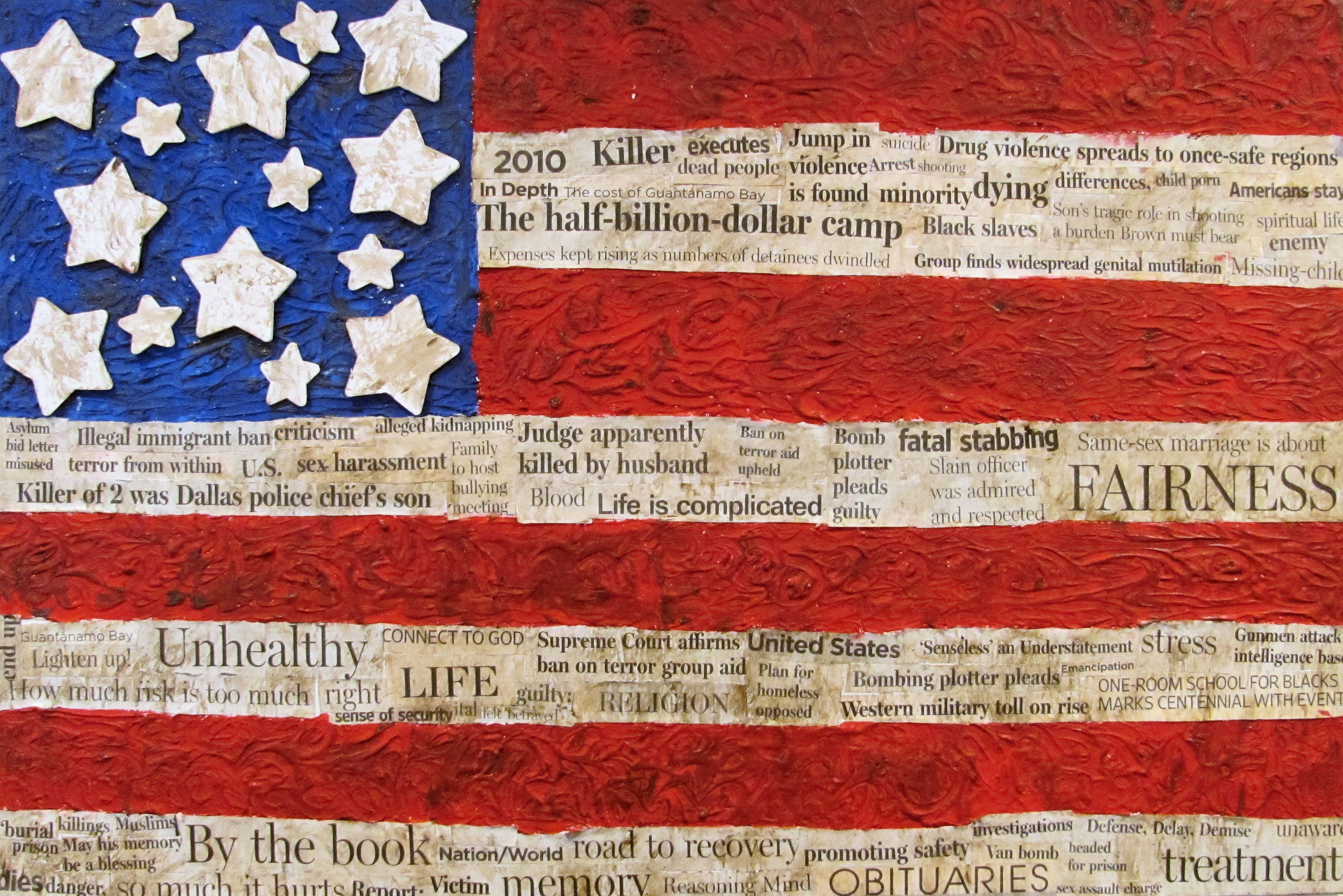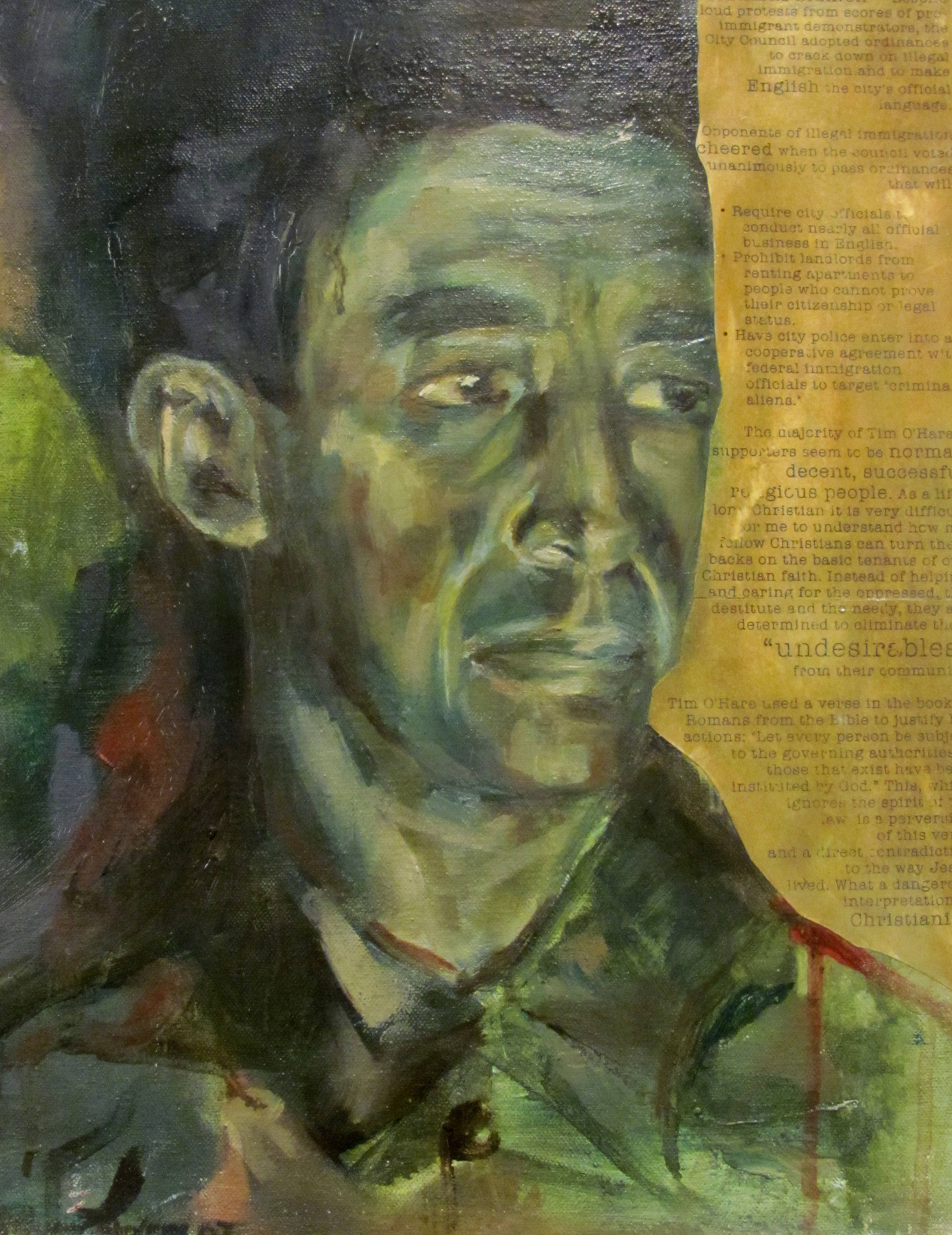 The 35 works, from photography to mixed-media, “don’t represent the uplifting themes that generally inspire works of art,” says Rick Halperin, director of the Embrey Human Rights Program in SMU’s Dedman College of Humanities & Sciences, whose course “America’s Dilemma: The Struggle for Human Rights,” inspired much of the artwork. “But art is a universal media that everybody can use to powerfully depict issues that resonate.”