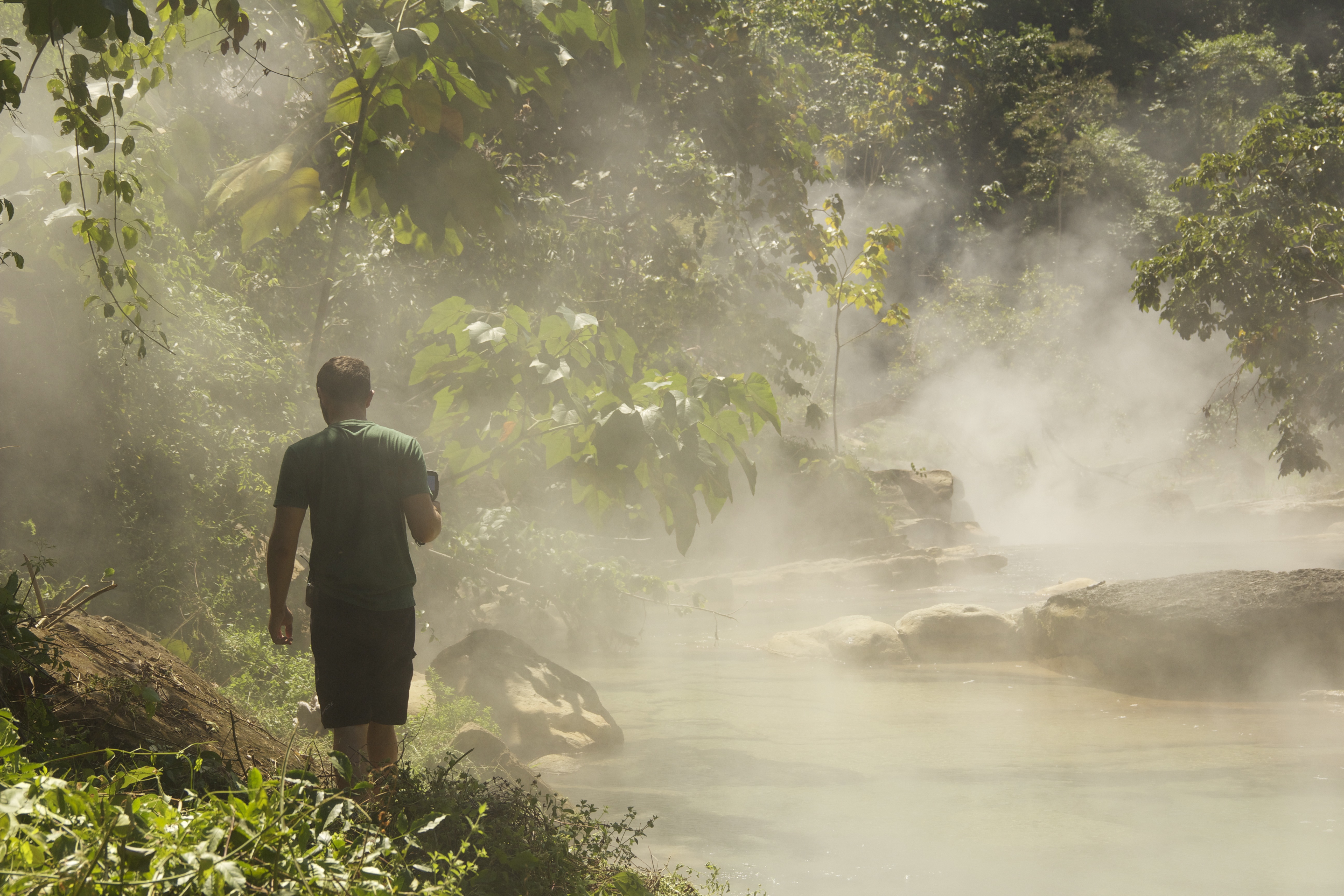 I had to cut my way through the brush at the side of the river to take temperature readings. All the while, right next to me was this very hot, fast-flowing body of water the width of a two-lane street. The shaman at the nearest village had told me, “Use your feet like eyes.” You can’t see heat, but you can feel it when you step near it. I wore sandals.