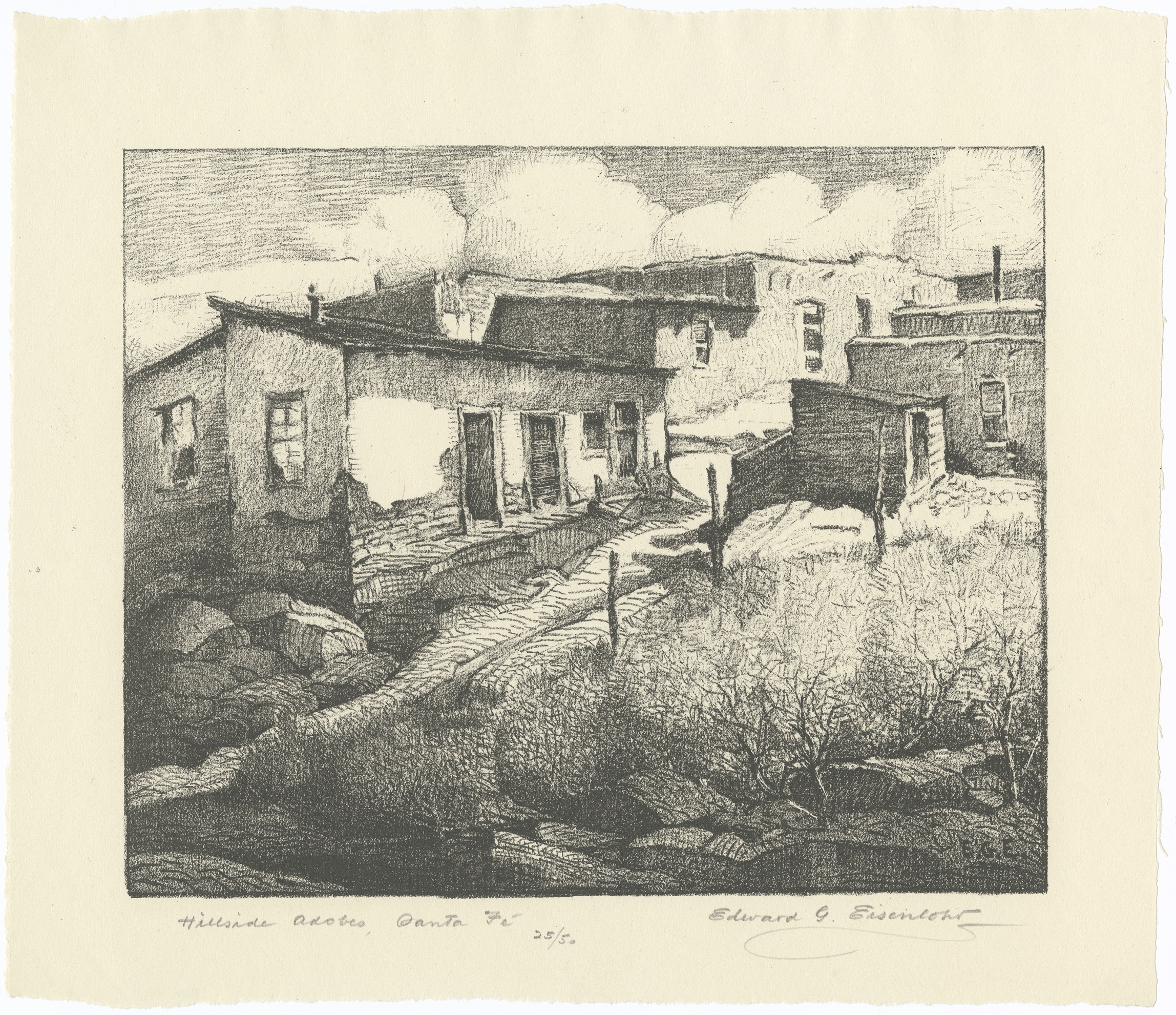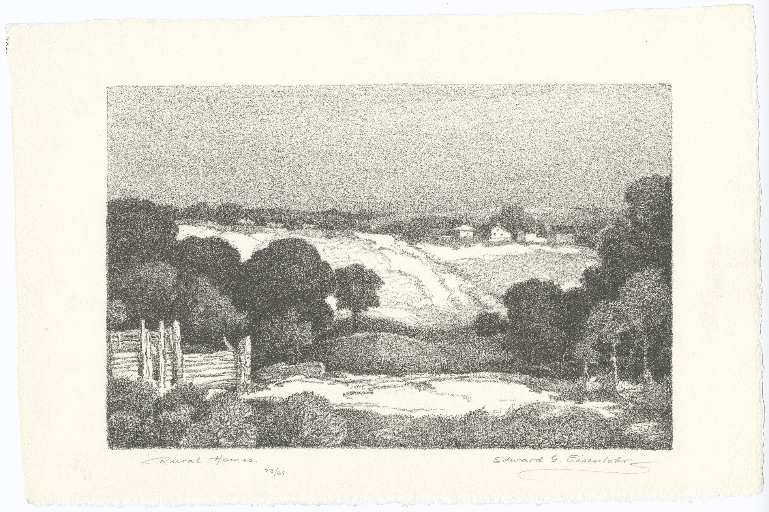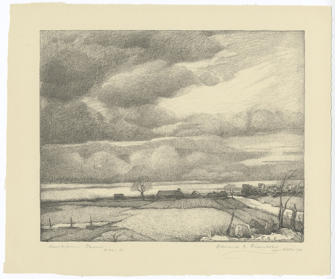 Edward Gustav Eisenlohr (1872-1961) was born in Ohio to a family of German immigrants, who moved to Dallas when he was two years old. He showed a strong aptitude for art at an early age, winning a prize in the art competition section of the newly established State Fair of Texas and studying for two years at The Concordia in Zurich as a teenager. In 1903, Eisenlohr was instrumental in establishing the Dallas Art Association, forerunner of the Dallas Museum of Art. He studied art with Texas artists Robert J. Onderdonk and Frank Reaugh as well as at the Art Students’ League summer school in Woodstock, New York; he later took additional art training in Germany before returning to Texas. Eisenlohr drew inspiration for art subjects from the Oak Cliff area of Dallas and his travels to New Mexico, the Texas Hill Country, and the western areas of his adopted state. Eisenlohr exhibited both in the U.S., including at the Art Institute of Chicago, Corcoran Gallery, New York City’s Museum of Modern Art, and the National Academy of Design, and in Europe, at the Paris International Exhibition (1932) and the Venice Biennial (1940). |