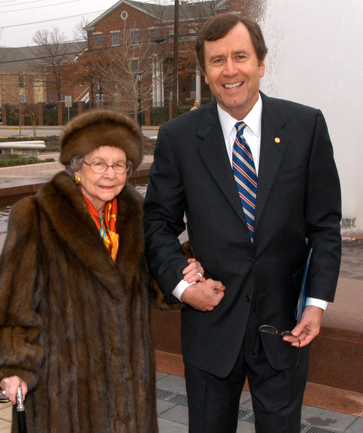 The Ann Lacy Crain Fountain, which greets SMU families and visitors on the east plaza of the University's Blanton Student Services Building, was a gift from Mrs. Crain and her family through The Crain Foundation. The fountain was dedicated in 2003.