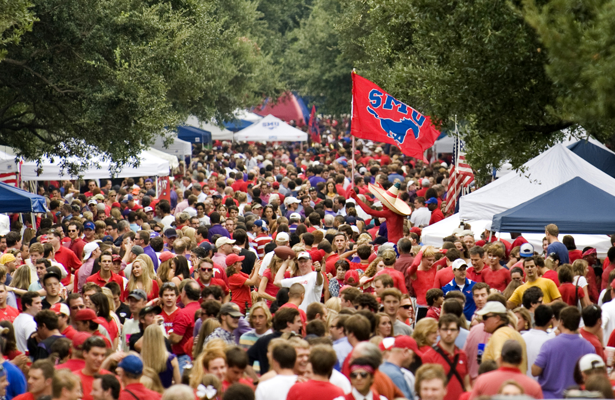 Everyone has a tailgating spot on the Boulevard. Look for tents for law, business, education, engineering, arts, science or humanities students and alumni, sports fans and alumni. Don't miss the 3 p.m. Homecoming parade, special activities for kids and toe-tapping performances by the Mustang Band. SMU.edu/Boulevard
