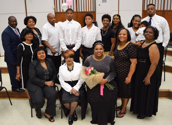 Maya Jones with a scholarship from the Black Alumni of SMU. From left, her maternal grandmother, DeNoah K. Davis; her mother, Marlene Jones; and her mother’s friend, Roosevelt James. (Photo courtesy of Maya Jones)