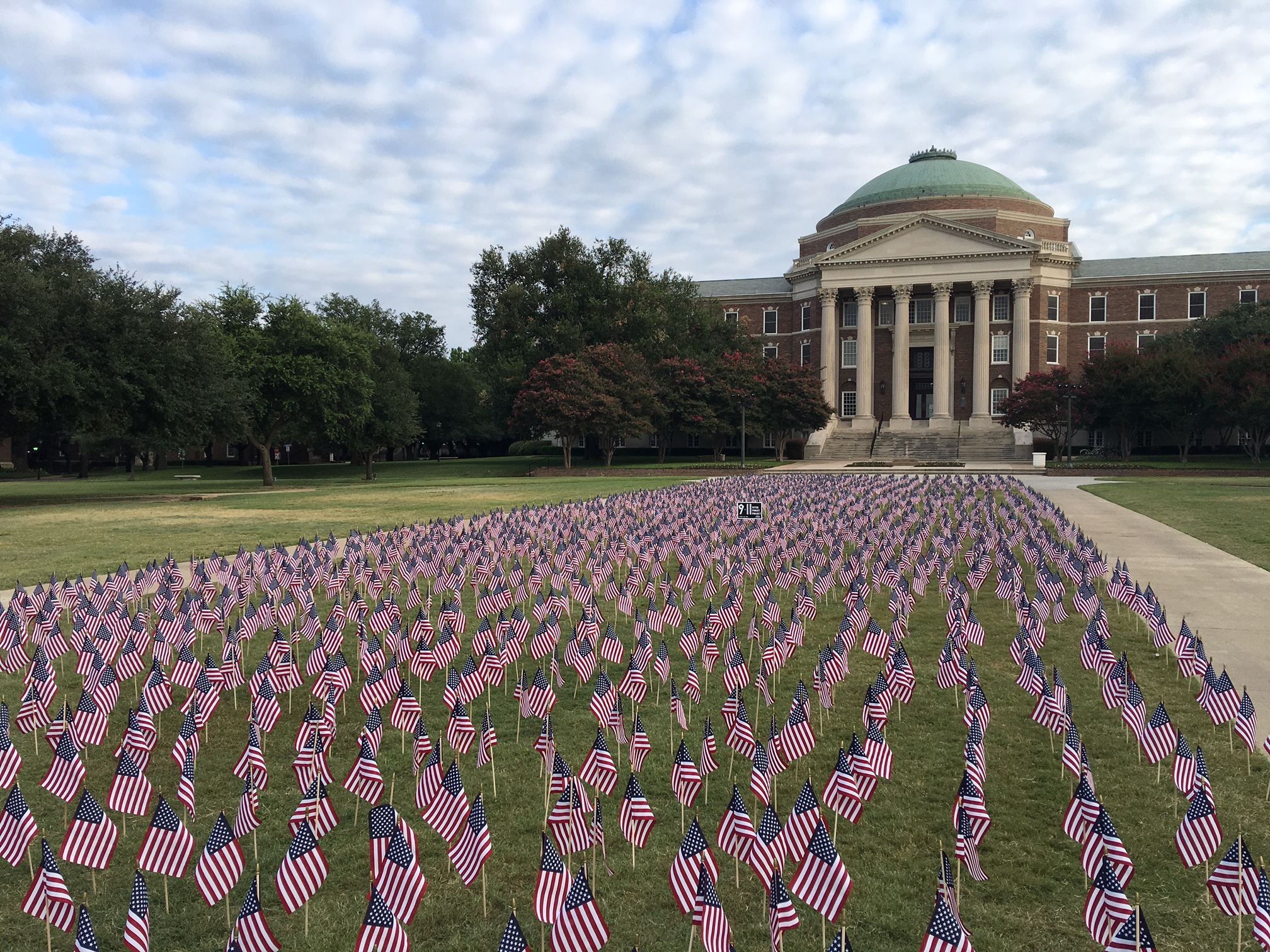 SMU’s student chapter of Young Americans for Freedom hosted a “Never Forget” public memorial ceremony in association with their display of 2,977 American flags on the Dallas Hall Lawn honoring Americans who died on 9/11.