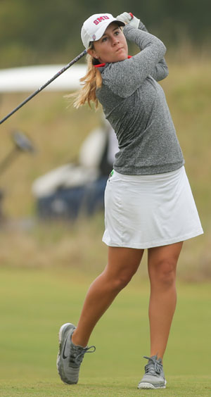 "I liked the part of the book where she said, "Enthusiasm is common; endurance is rare," says Brigitte Dunne, a sophomore sport management major. She won the Joanne Winter Arizona Silver Belle Championship in December 2016 in Scottsdale, and placed third at the recent Dickson Tournament in The Woodlands, Texas. She was named American Athletic Conference March 3 Women's Golf Player of the Week. Dunne played competitive soccer and tennis growing up, but discovered golf in middle school. "I liked golf because it didn't come easy," she says.