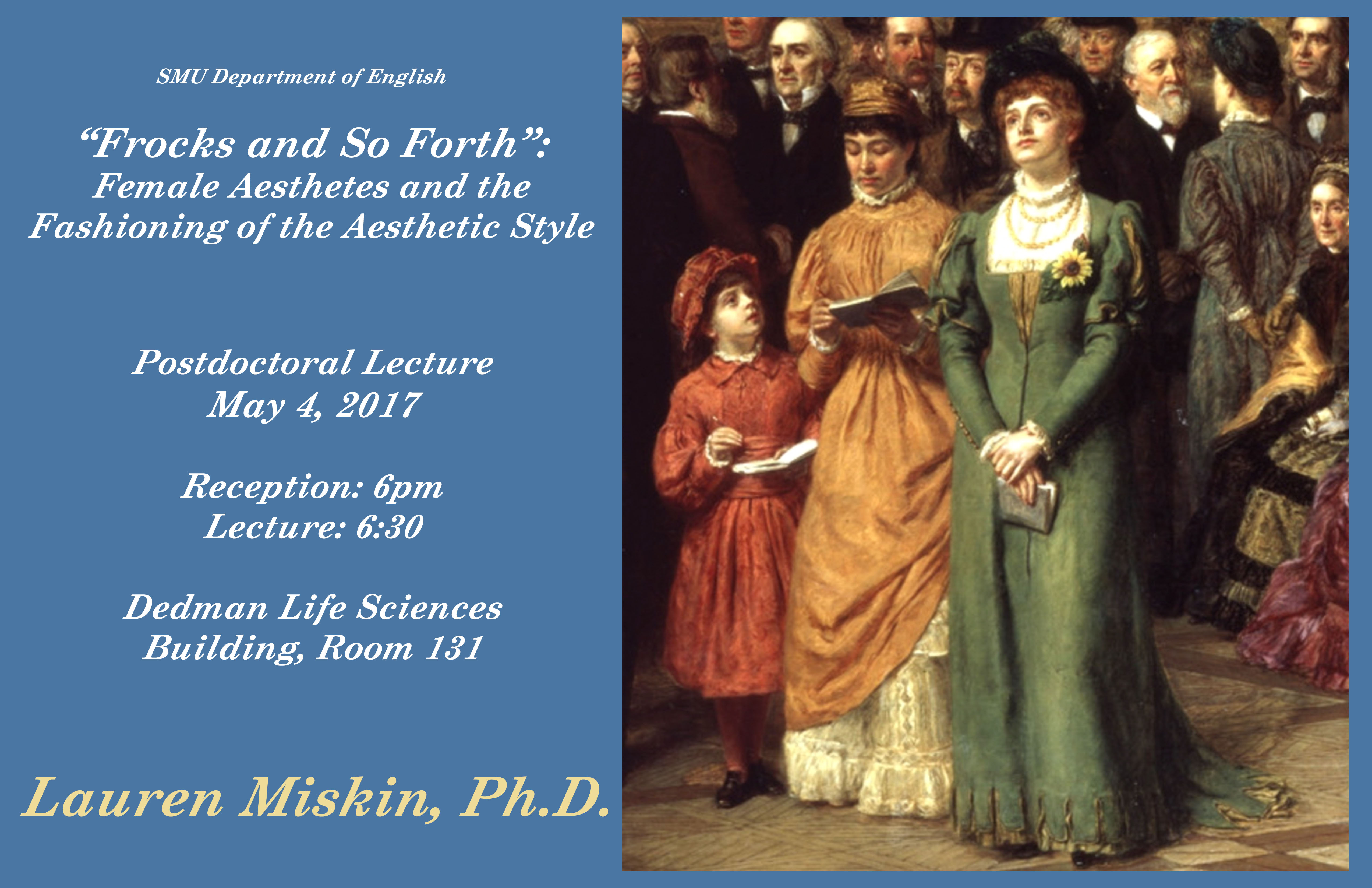 This lecture in SMU's Dedman Life Sciences Building on May 4 will explore the fashion journalism of two prolific but largely forgotten female aesthetes – Graham R. Tomson and George Fleming. Excluded from male literary clubs and from publishing in more prestigious venues, Tomson and Fleming strategically repurposed the appropriately feminine genre of the fashion column to articulate their tastes, to hone their artistry, to advance their careers, and to develop crucial professional networks.