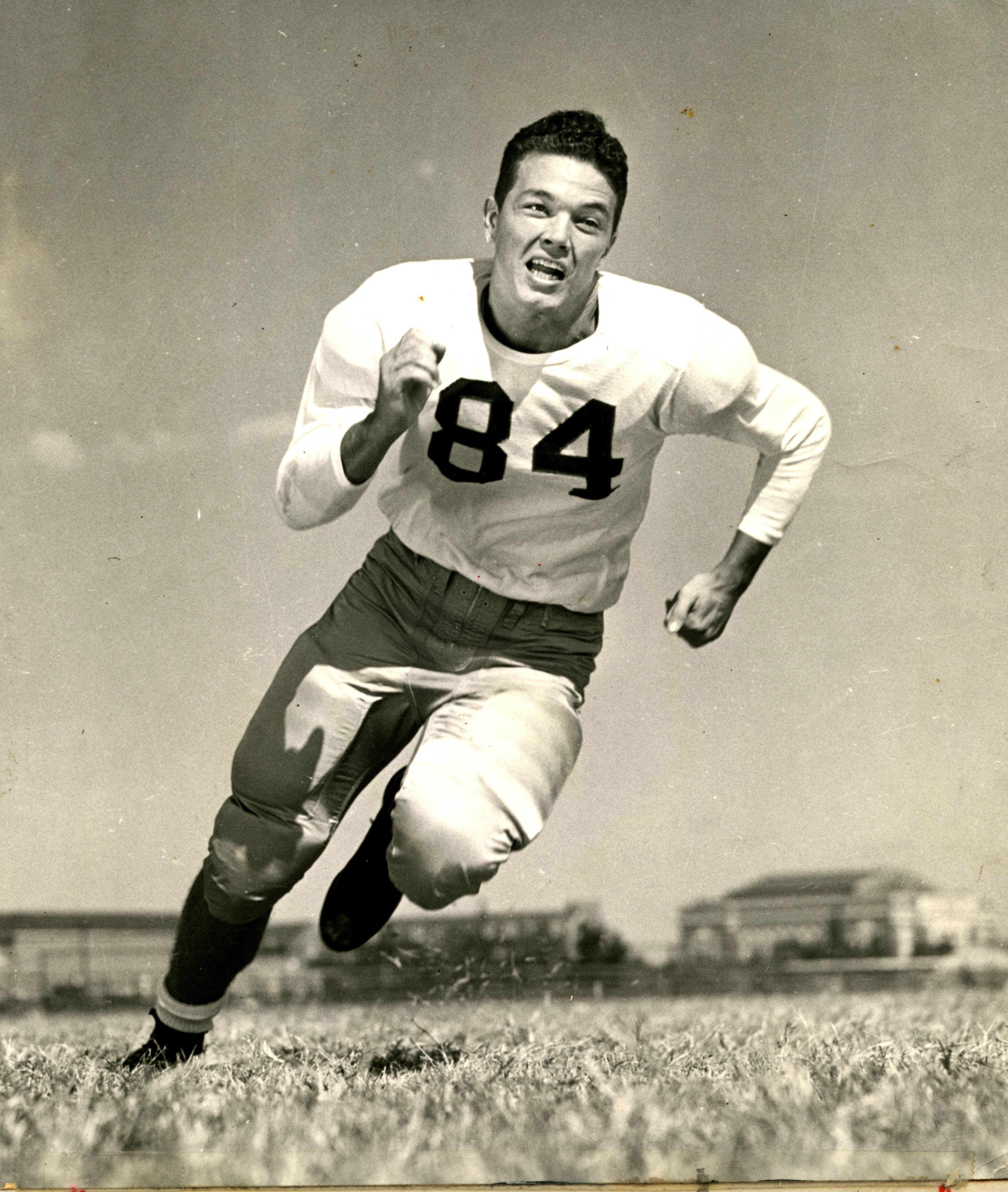 At SMU, Folsom was a star student athlete, alumni leader and philanthropist. His record as the only Mustang to letter in four sports still stands, earning the distinction in in football, basketball, baseball and track. He played football alongside SMU legends Doak Walker and Kyle Rote, and was a member of the 1948 team that tied Penn State in the Cotton Bowl Classic and was co-captain of the 1949 team that defeated Oregon State in the Cotton Bowl. An outstanding hitter on SMU's baseball team, he also placed first in 1944 in the Southwest Conference high jump competition.