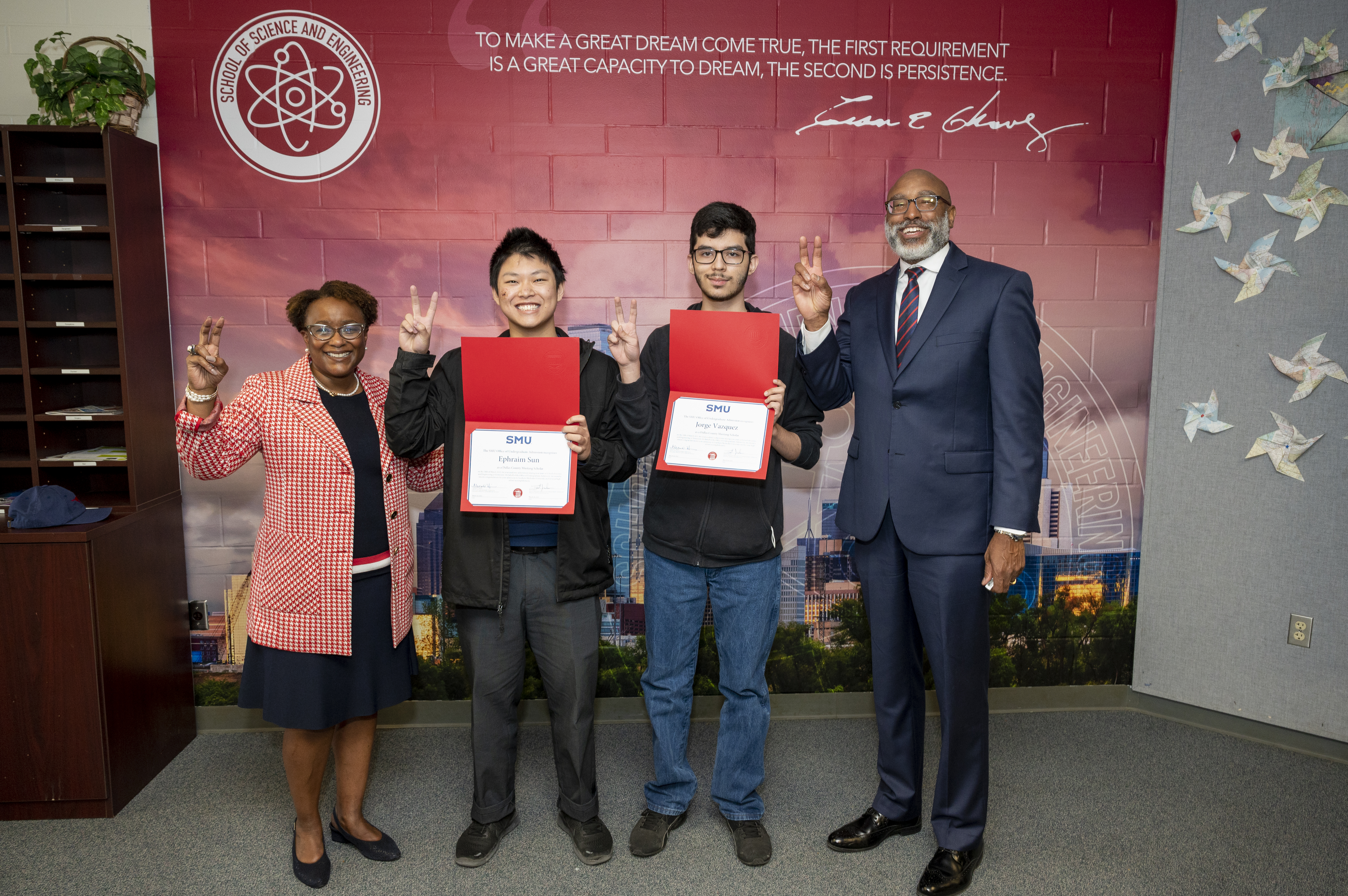 Sun and Vazquez are among ten students from across Dallas County who have received Mustang Scholarship offers from SMU. Other scholarship winners include Carah Ke'Shona Allen, Cedar Hill High School; Stella Barrera, Nimitz High School; Christopher Leonard Degrate, Jr., Kimball High School; Elizabeth Larez, Lancaster High School; Jessica Long, Grand Prairie High School; Maria Murad, Bryan Adams High School; Diya Patel, North Mesquite High School and Paul Rowe, MacArthur High School.