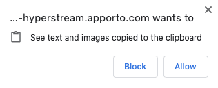 Clipboard access must be enabled in your browser settings in order to copy and paste between your computer and Apporto.
