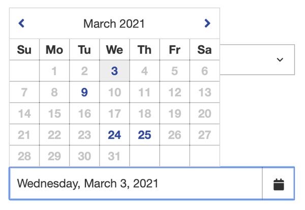 6. Click the Select a Date For Your Exam field to choose an available testing date from the calendar. The available dates will be colored links.