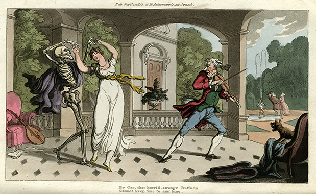During the Middle Ages, a genre developed called the Dance of Death which depicted a personification of death leading a procession of people ranging from kings to paupers, emphasizing the mortality of all persons regardless of social status. The genre included poetry, prose works and visual art. While individual works sometimes focused exclusively on images or literature, many included both. This exhibition features images popularized in print by Hans Holbein the Younger (1497-1543) and explores the artist’s possible inspirations and his influence on subsequent illustrators.