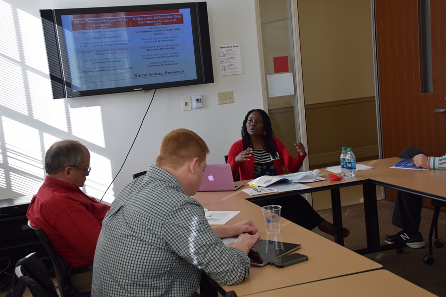 Rev. Dr. Ouida Lee (M.Div.'96, D.Min.'04) engages participants of workshop panel discussion,