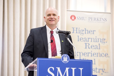 The Public Life | Personal Faith events are sponsored by the family of Pat and Jane Bolin. Pat Bolin (left), Chairman and Chief Executive Officer at EagleCorp and Eagle Oil & Gas Co. in Dallas, is a graduate of Southern Methodist University (B.A. ’73) and 2010 recipient of the Distinguished Alumnus Award from the SMU Cox School of Business. Joining Pat Bolin and Fournier are his wife, Jane Bolin, future daughter-in-law Mary Katherine Lott and son Ross Bolin.