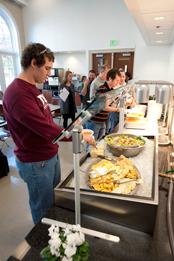 Every Tuesday, Wednesday, and Thursday, Perkins gathers as a community during the lunch hour to share in a meal and catch up on what is going on in each other lives. Community Lunch is also a time where students make announcements and reminders for all to hear. If you miss community lunch, you miss a great meal and the latest news! Community Lunch is served in the Refectory in Prothro Hall from 11:45 am - 12:30 pm. Menus are posted each week at the link below and emailed in the Perkins News digital newsletter each Friday. For more information please email Tracy Anne Allred, Assistant Dean of Student Life and Director of Community Engagement at tallred@smu.edu.
