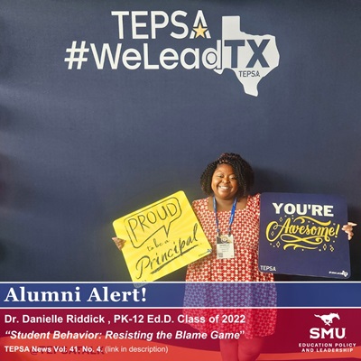 Dr. Danielle Riddick, Principal of Vernal Lister Elementary School in Garland, TX, recently published a guest column in Texas Elementary Principals and Supervisors Association (TEPSA) News on why educators need to resist playing the blame game and focus their efforts on “building a cohesive mindset, identifying a shared purpose and committing to the right work.” Her very interesting article appears on page 8 of the TEPSA News.