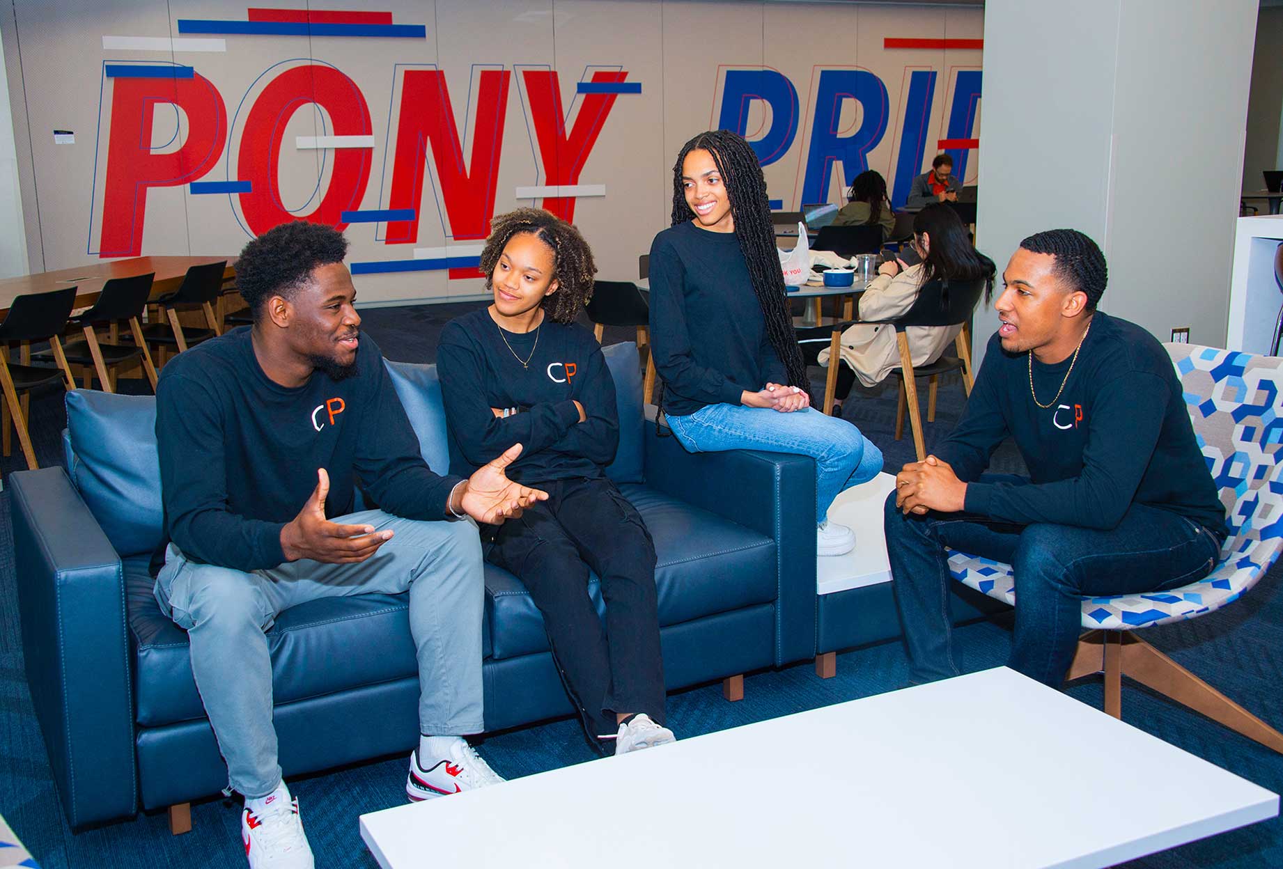 The CollegePlus team (from left) Seun Suberu ’23, Sparrow Caldwell ’23, Jasmine Patrick ’23 and Matthew Merrit ’23. While his original collaborators are no longer part of the project, he’s put together a committed SMU team. Lending their expertise to CollegePlus’ mounting success are: