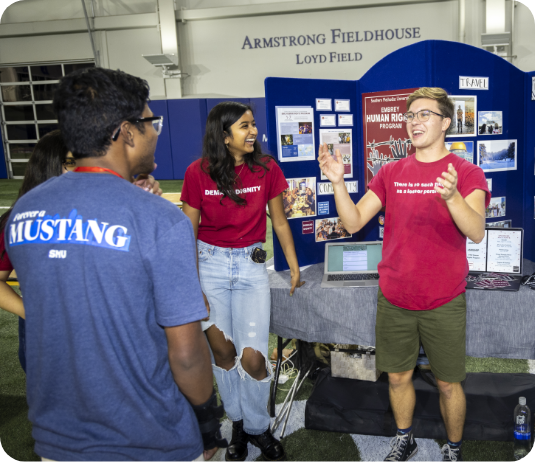 Welcome to SMU! Getting settled into campus doesn’t stop after Move-In and Stampede – our First 5 program is designed to help you get involved and stay engaged with the campus and your new community through a series of student experiences. Some you do on your own, and some you do with others. Click the button below to learn more and scroll through the page for additional resources. Still have questions? Ask the chatbot by clicking the speech bubble icon in the bottom right corner. Pony Up!