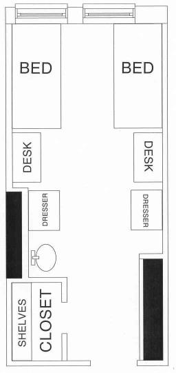 Sample floor plansSketches are for illustration only; actual room layouts and furnishings may vary. Community bath double room (Virginia) ![]()